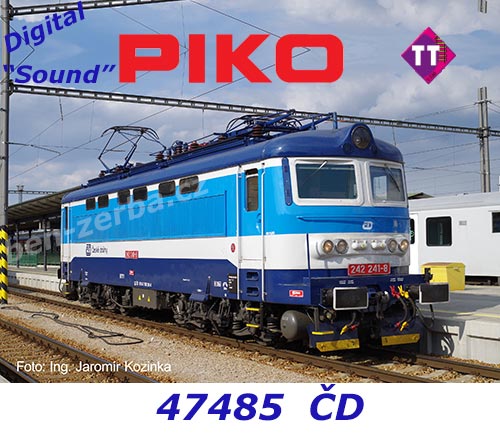 Elektrická lokomotiva PIKO řady 242, ČD v éře VI zaujme prvotřídní kvalitou modelu: precizní tvarování karoserie, detailní strojovna a jemně propracovaný podvozek. Autentickou prezentaci zajišťuje moderní LED osvětlení se směrovým přepínáním bílého/červeného světla a digitálně přepínatelné osvětlení kabiny a strojovny.